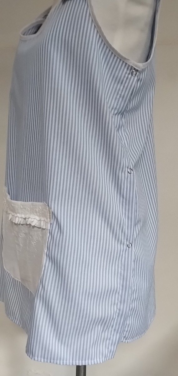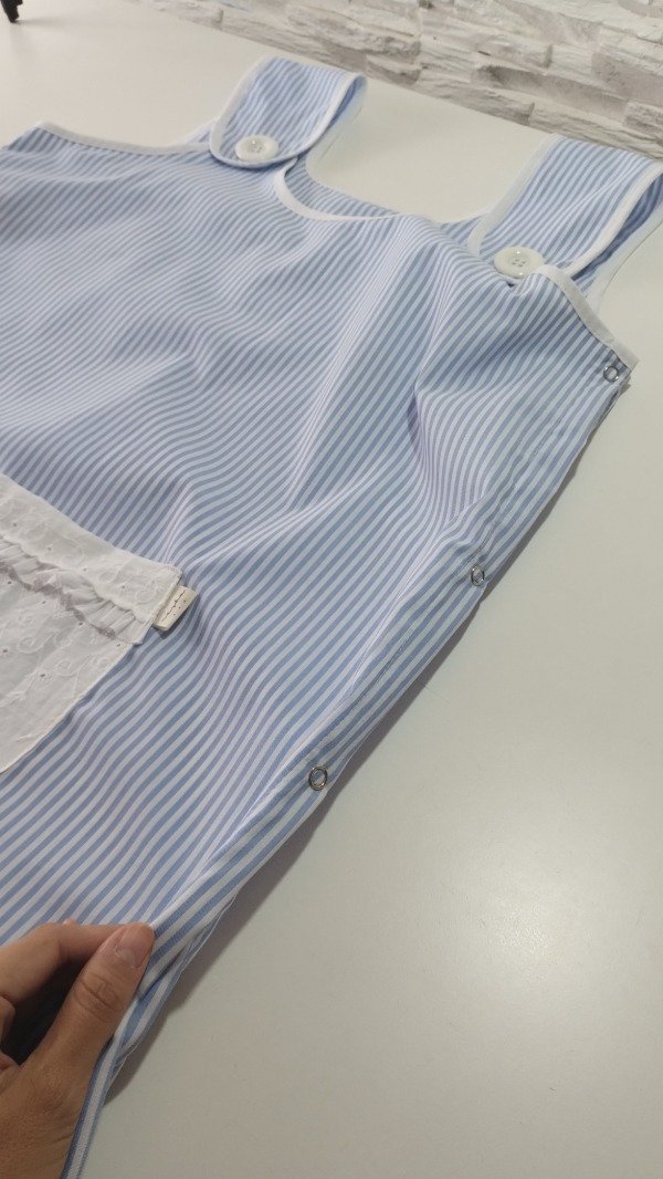 Algunos guardapolvos pueden tener recortes en broderie de algodón o gabardina de algodón. Estas telas no poseen características antimanchas.